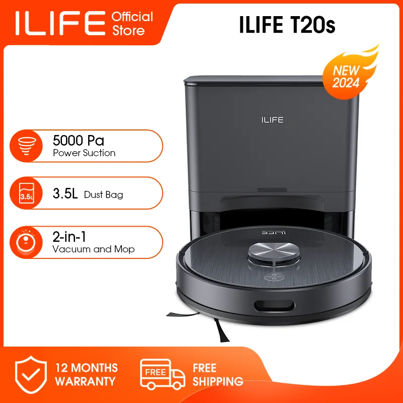 Ilife T 20S Lds Robotstofzuiger, 5000 Pa,Auto Leeg Dock 60 Dagen Handen Van Reinigingsstofzuiger En