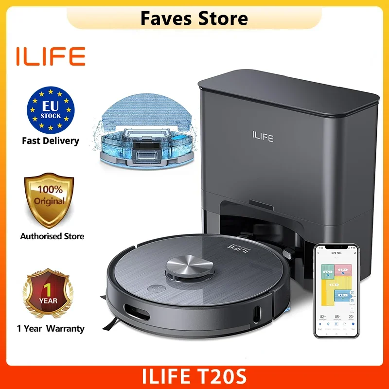 Ilife T 20S Robotstofzuiger, 5000Pa Zuigkracht, 260 Minuten Runtime Zelflegen Stationssysteem, Lds