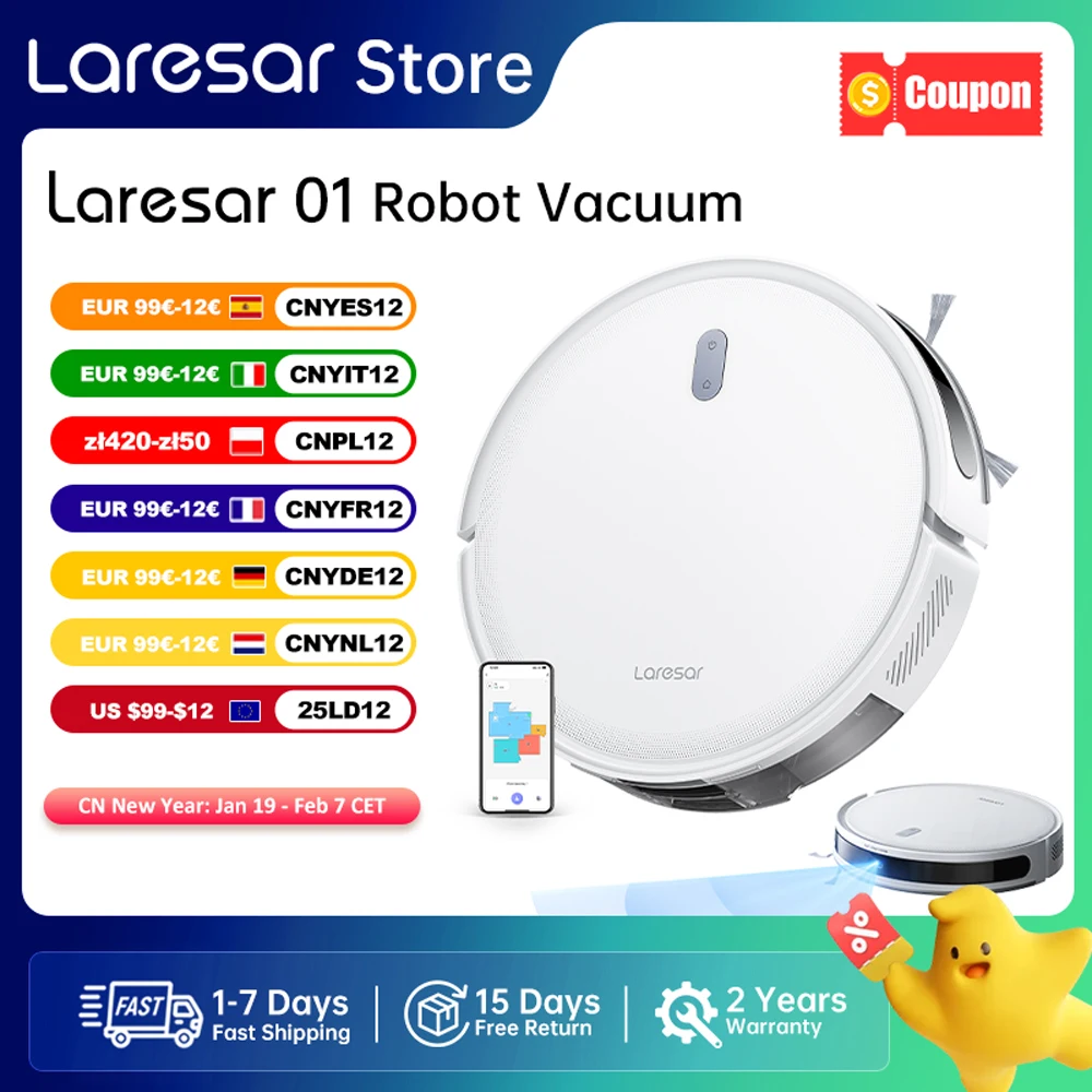 Laresar 01 Robotstofzuiger en Dweil, LDS Lidar 5000Pa Zuigkracht 180min, Slimme Planning APP Alexa